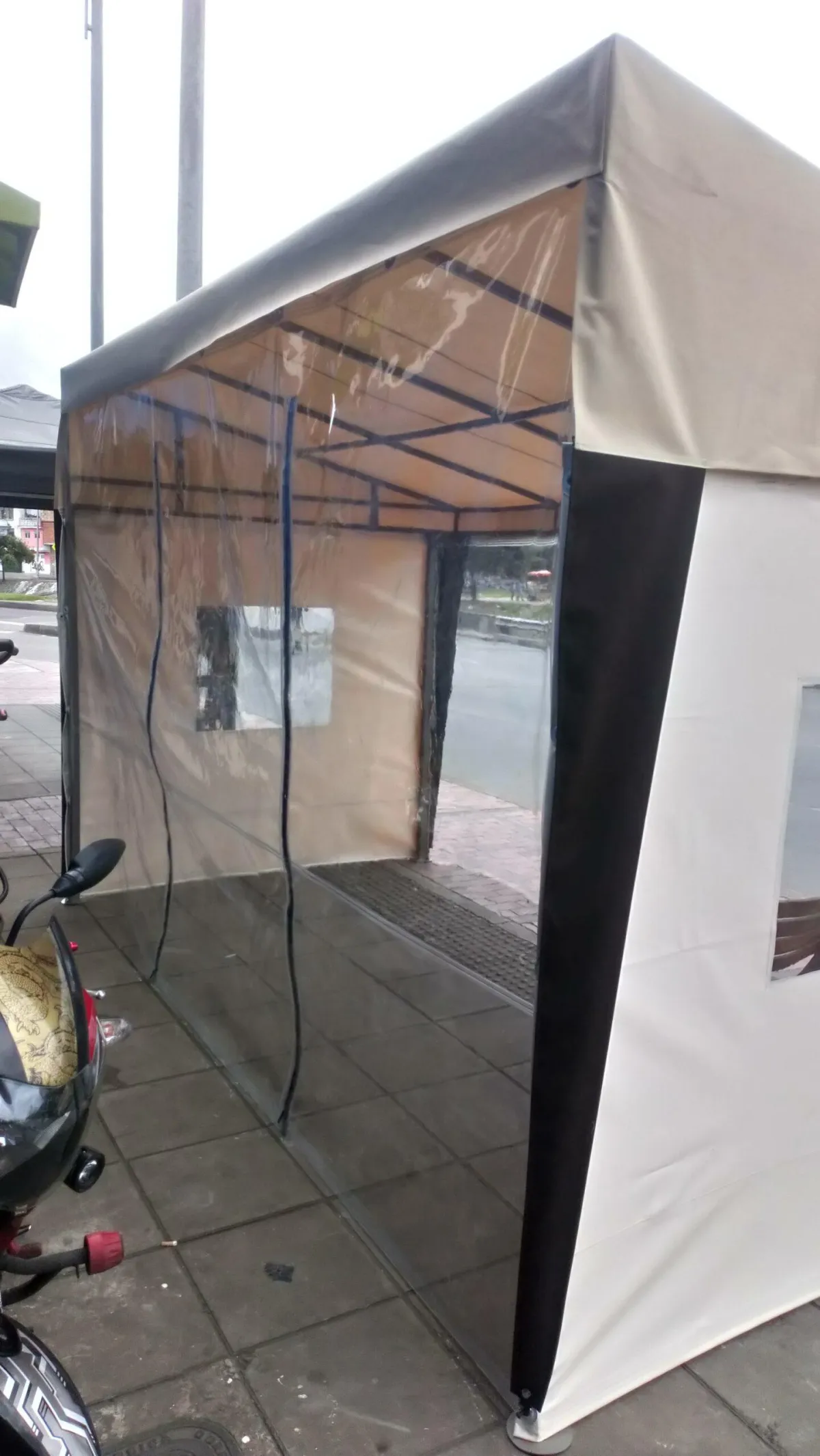 Es una estructura ligera, generalmente ubicada en la entrada de un edificio, sobre una acera, ventana o espacio abierto, que sirve como protección contra el sol, la lluvia, el viento u otros elementos climáticos.